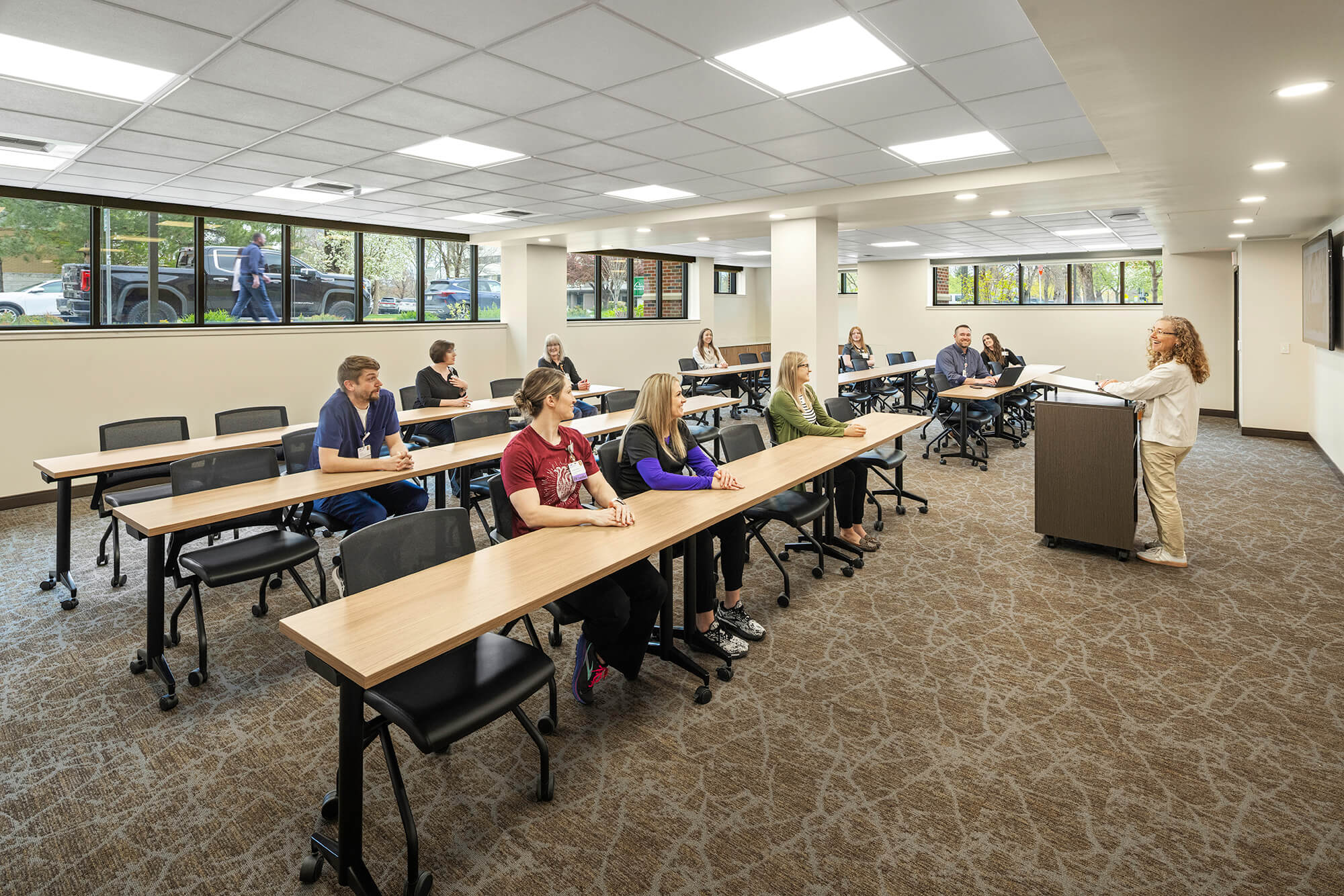 9,500sf interior buildout of a medical transfer and incident command center below an active/occupied endoscopy unit within the hospital. Included modern finishes, acoustic mitigation, raised access floors, medical office space, conference rooms, and heavy communications systems.